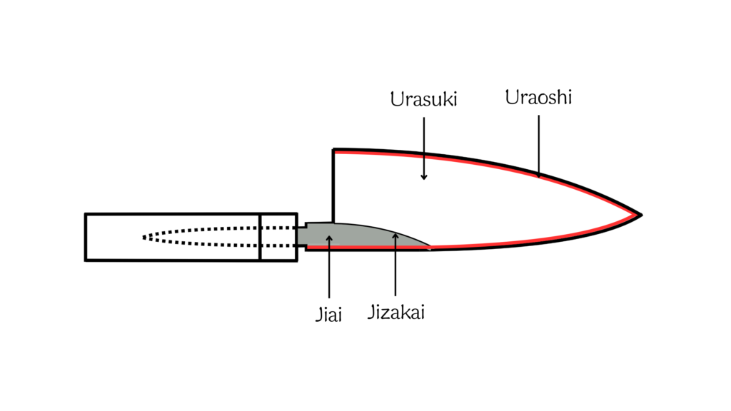 There are differences between Japanese knives and Western knives in terms of their shapes and the names used for each part.