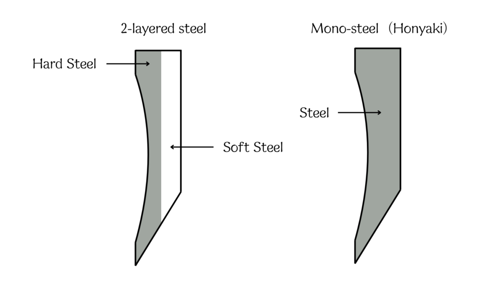 The common structure is the “insert-type,” where the “tang” (nakago)—the part of the blade that goes into the handle—is driven into a wooden handle. A major advantage of this design is that if the handle becomes damaged or corroded over years of use, only the handle can be replaced with a new one, allowing the knife to be used continuously. This reflects Japan’s unique culture of taking good care of tools as lifelong possessions.