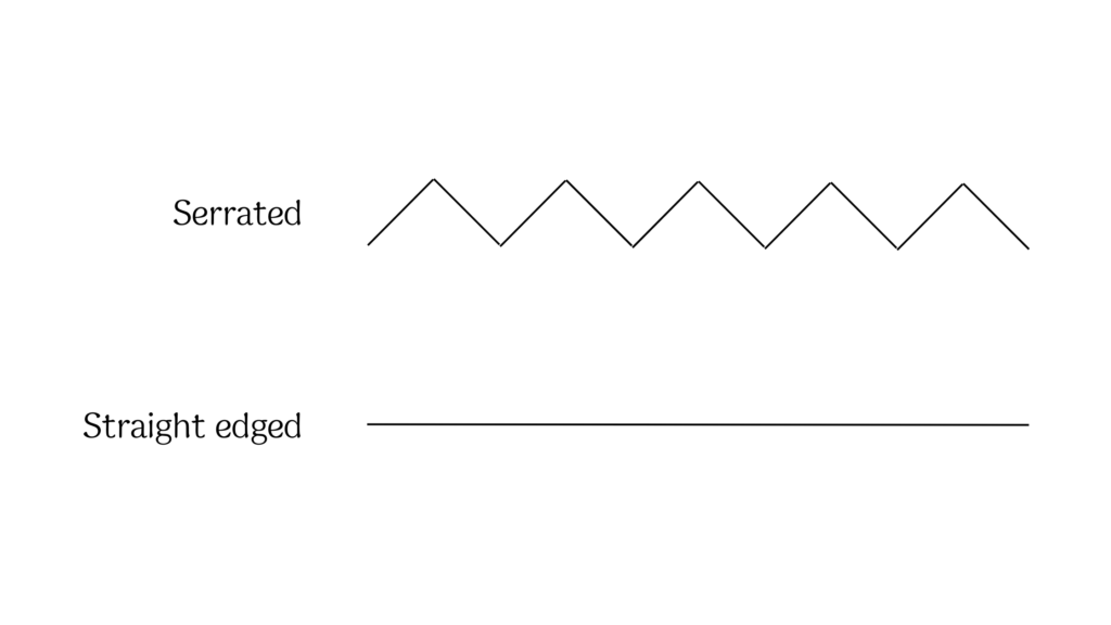 First, let’s imagine a jagged blade like a saw and a straight blade.