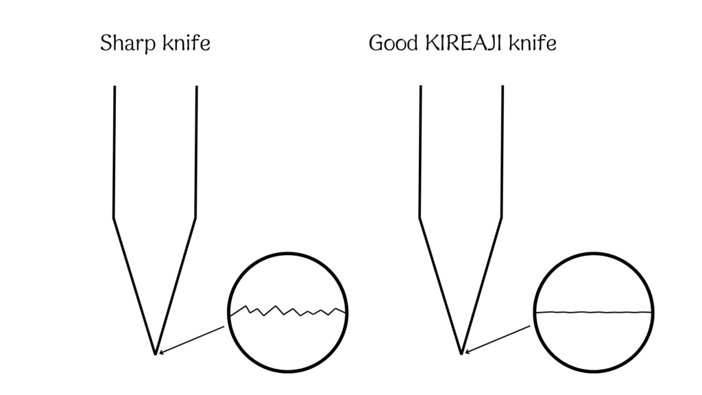 And here are illustrations of a “sharp knife” versus a “knife with good KIREAJI.”