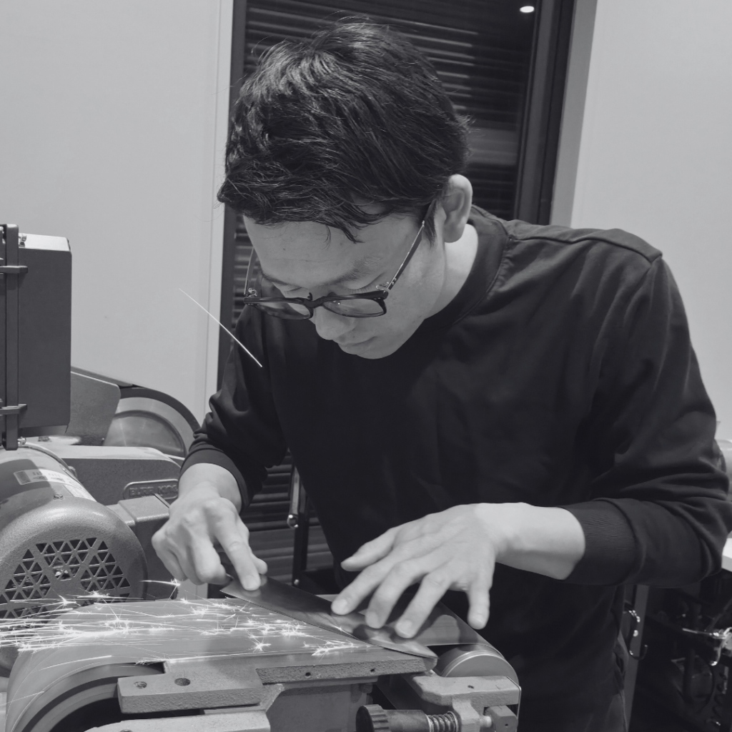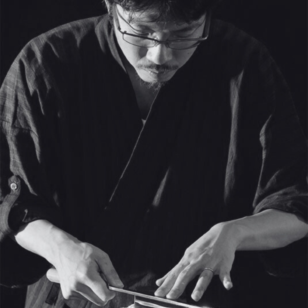 柿沼氏は、広範な知識と鋭い感性を武器に、包丁や砥石の設計・デザインから製作に至るまでを自ら手掛ける、新世代の旗手です。