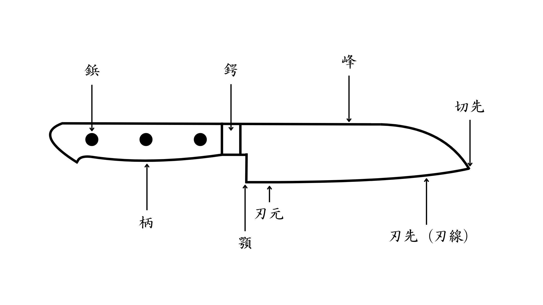 基本的な包丁の形は、切るための「刃」の部分と握るための「柄」の部分からできています。