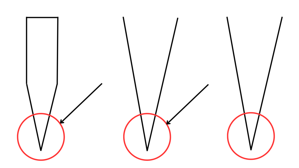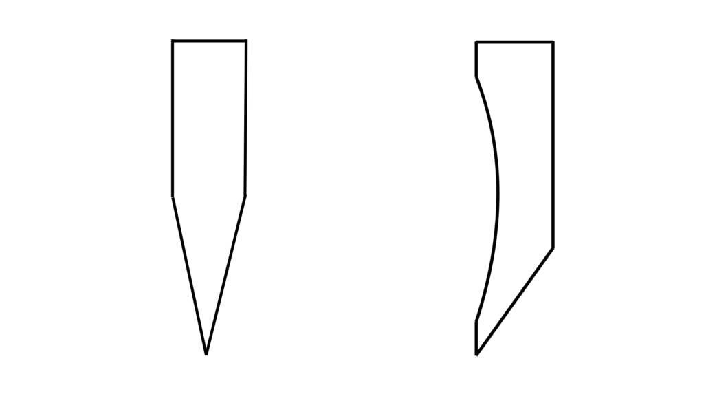 包丁の刃先や切れ味と聞いて、多くの方はこのような図をイメージされるのではないでしょうか。