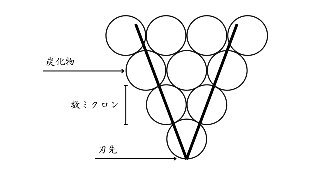 炭化物の形はあくまでイメージですが、大きさとしては数ミクロンから数十ミクロン単位。